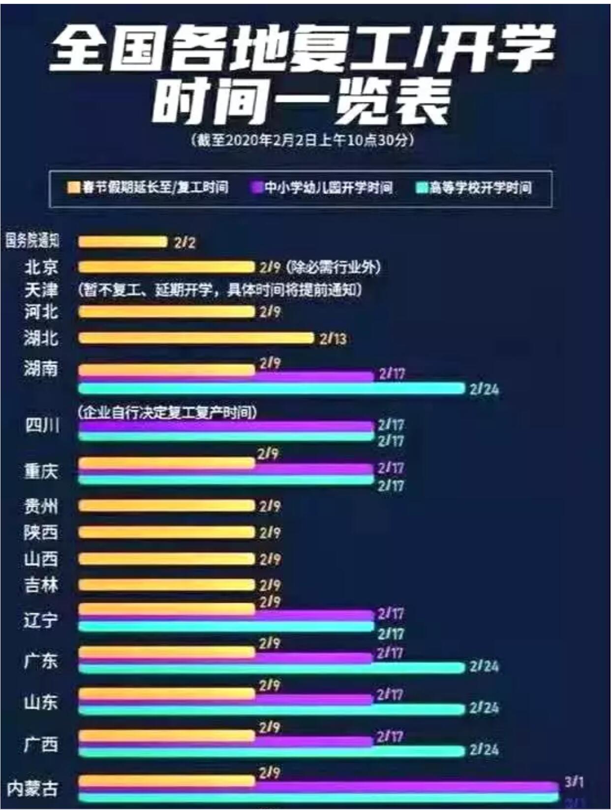 為有效防控疫情擴散,各省市分別發(fā)布了企業(yè)復(fù)工時間通知。各地復(fù)工要求,大體上不得早于2月9日24時之前,其中湖北省要求各類企業(yè)復(fù)工時間不得早于2月13日24時。因此,主要工業(yè)活動至少較原來的春節(jié)假期推遲9日。雖然各地都給出了“不早于”的安排,但是某些地區(qū)的實際開工情況仍然取決于疫情的防控進展,存在一定的不確定性。