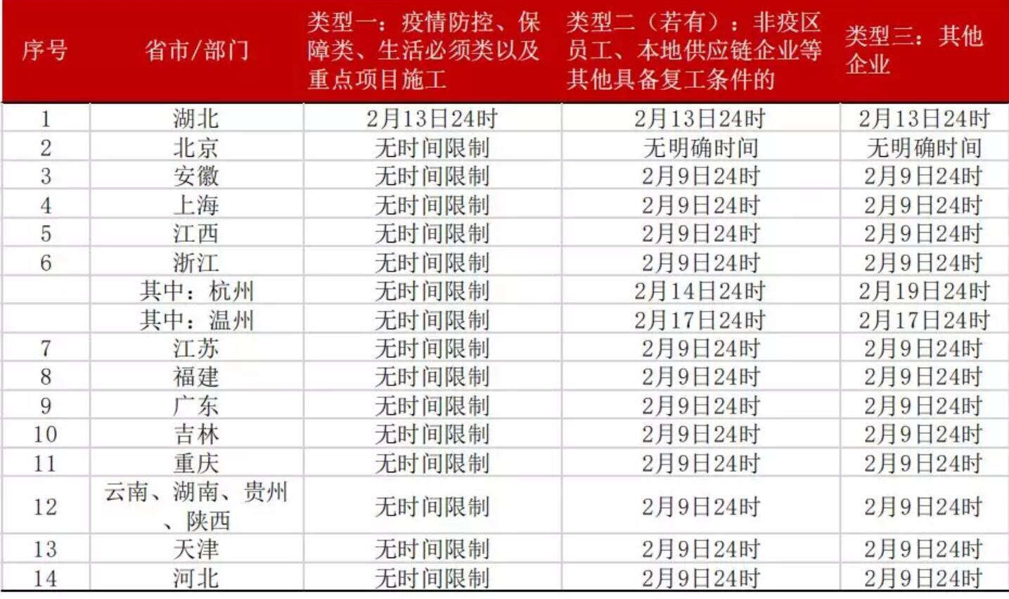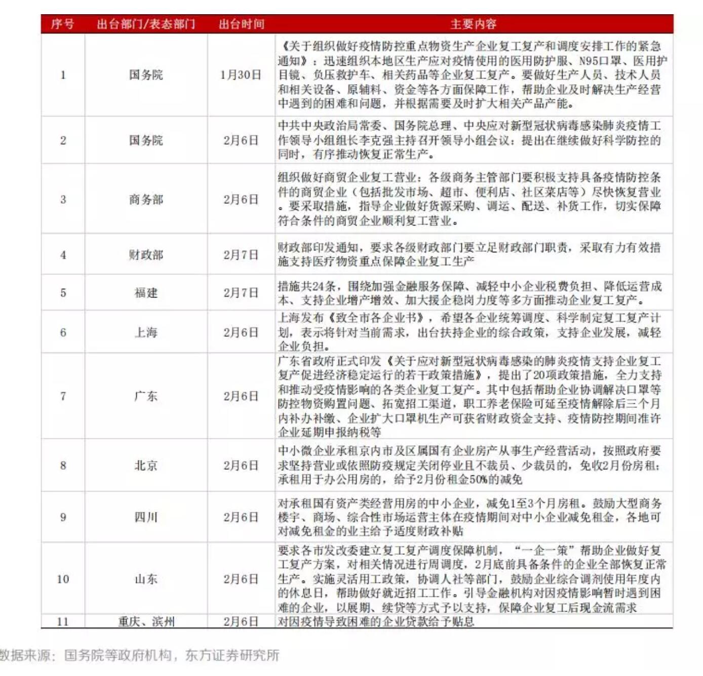 國務院、商務部、財政部、央行等多部門也相繼發(fā)布支持企業(yè)復工復產的政策。各地政府更是出臺了支持企業(yè)復工并嚴控疫情的相關政策。