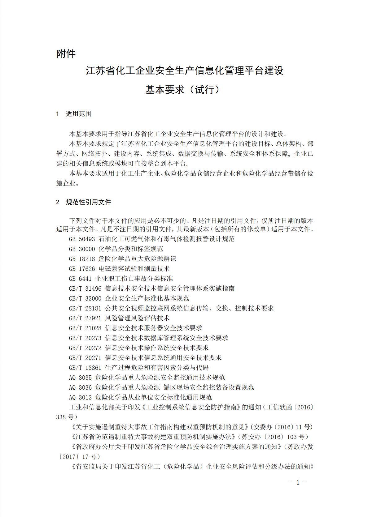 附件 :江蘇省化工企業(yè)安全生產(chǎn)信息化管理平臺(tái)建設(shè)基本要求(試行)