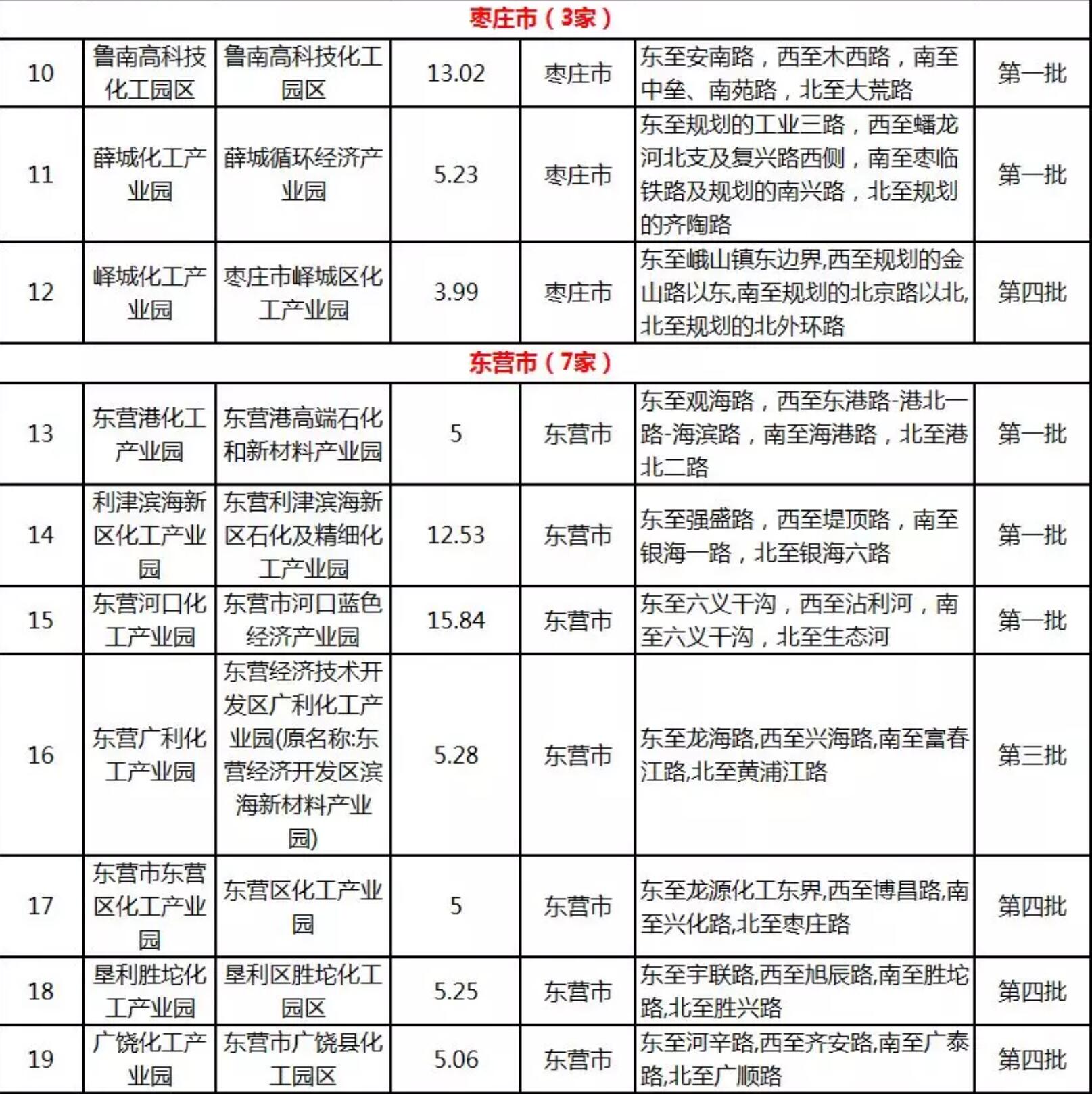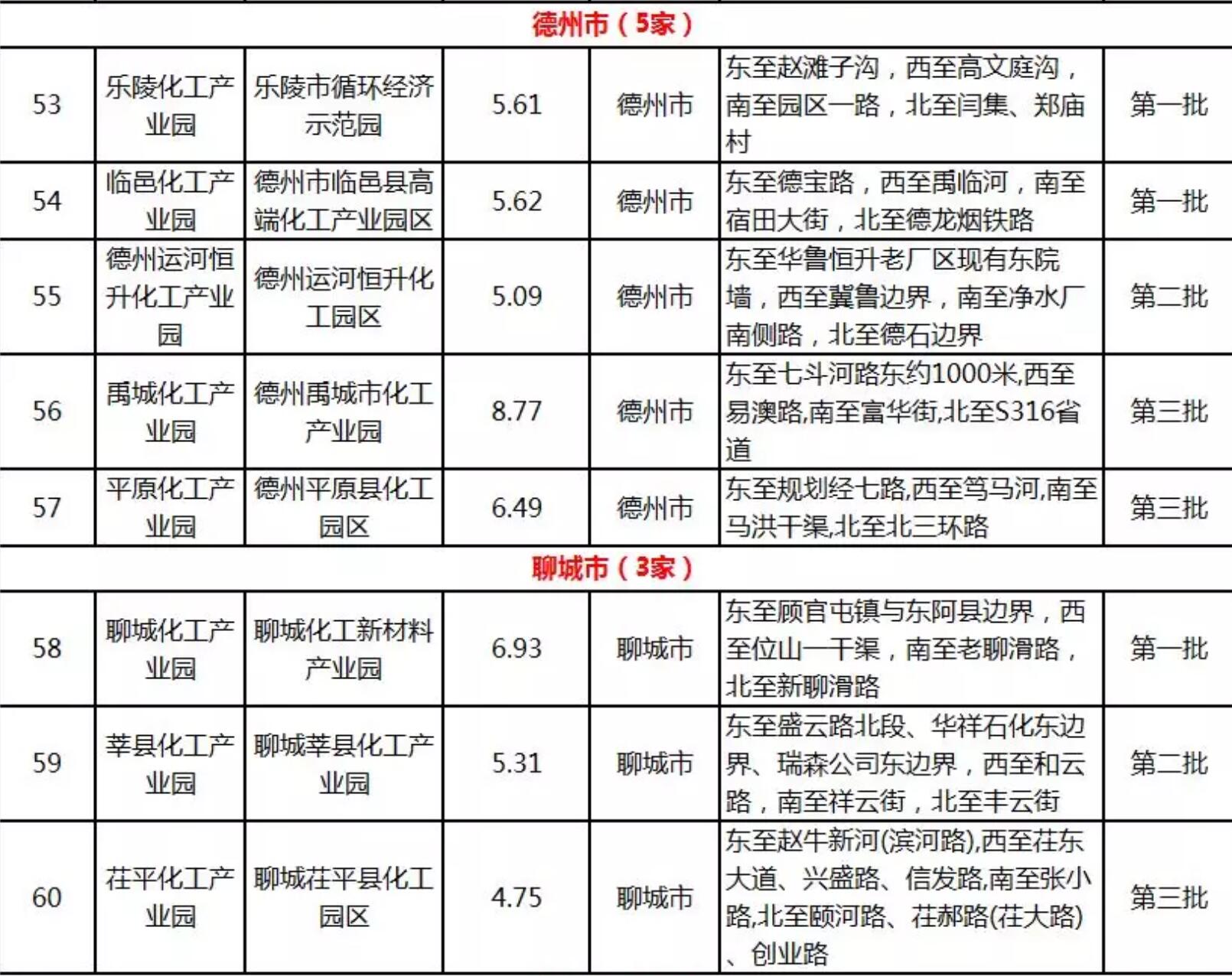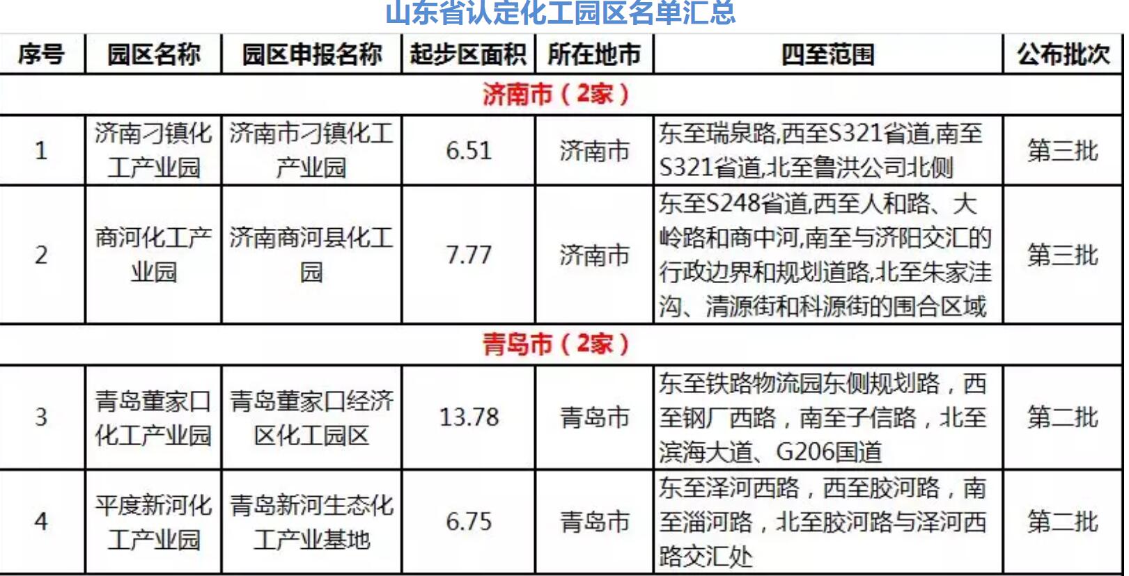 表三 山東省認定專業(yè)化工園區(qū)名單匯總