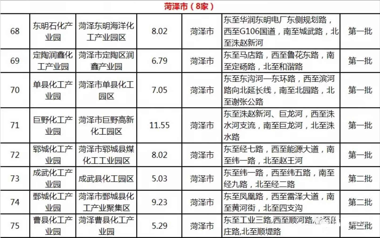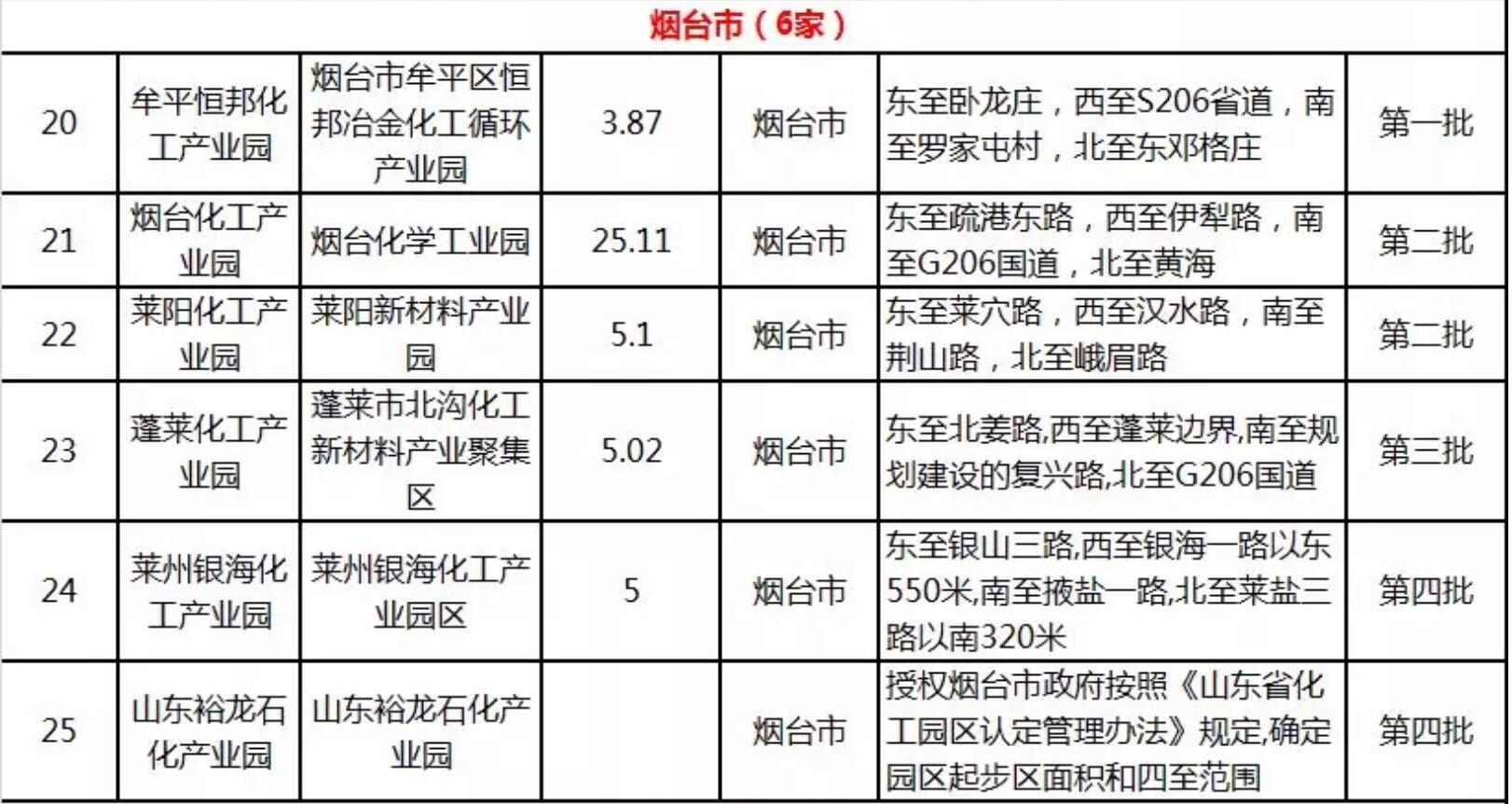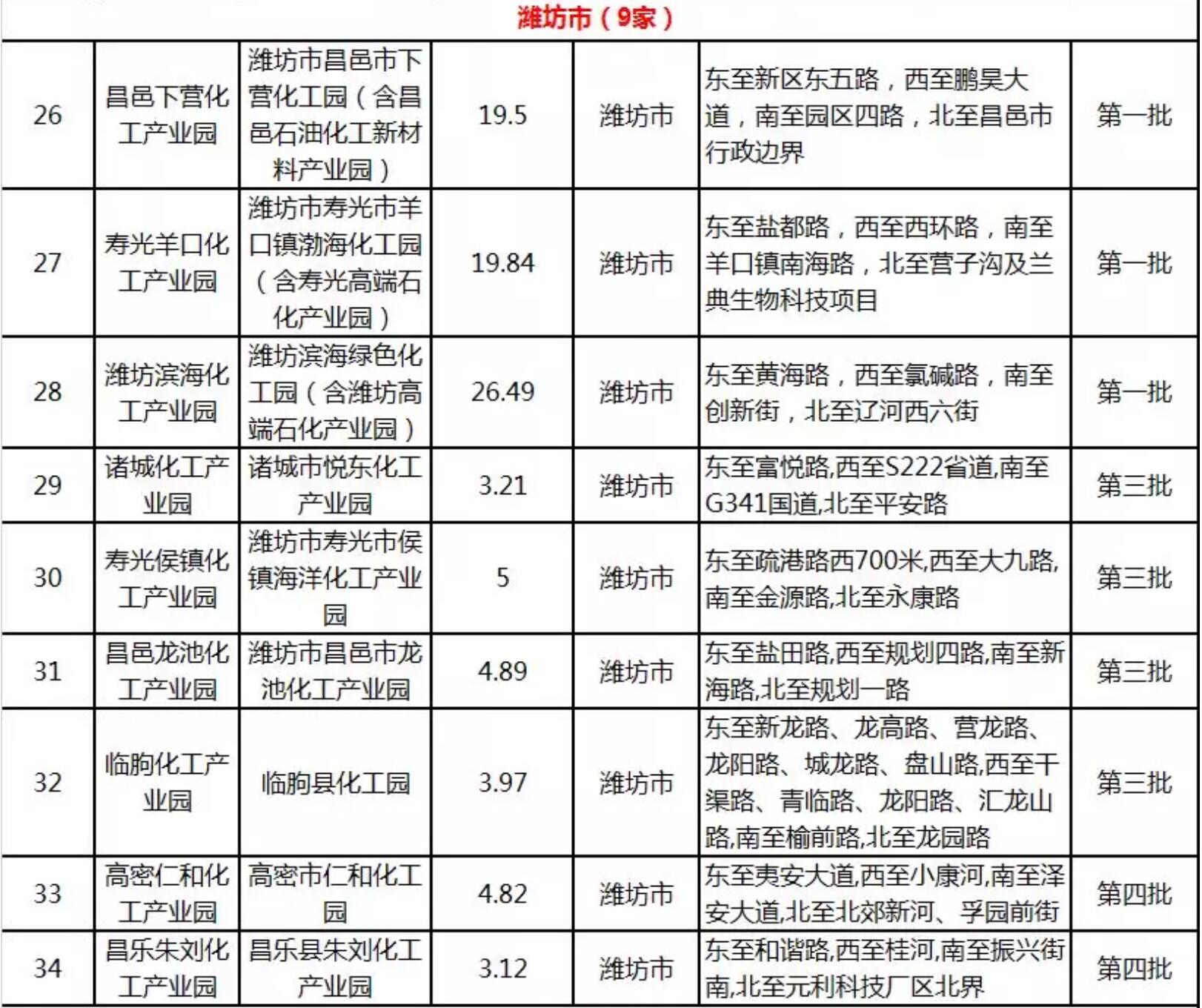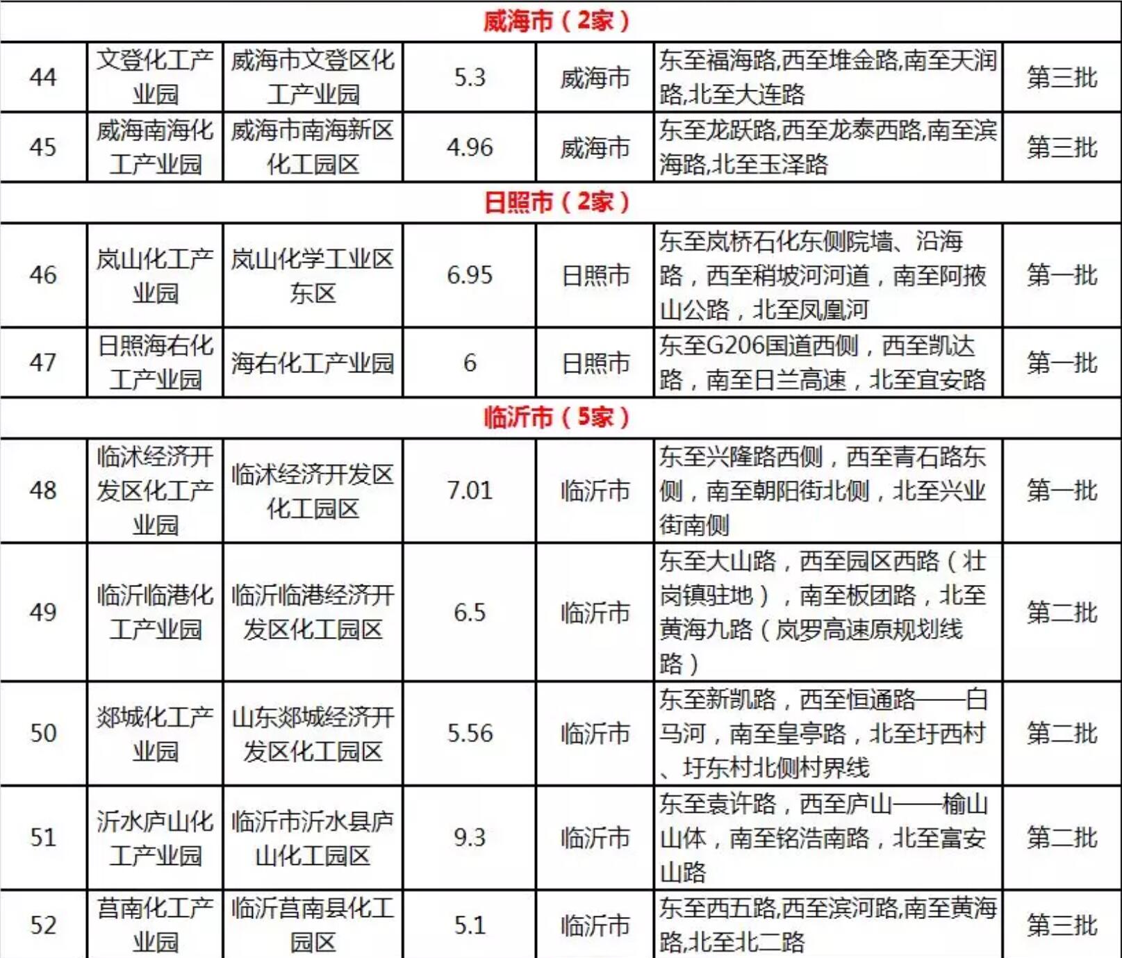 表三 山東省認定專業(yè)化工園區(qū)名單匯總