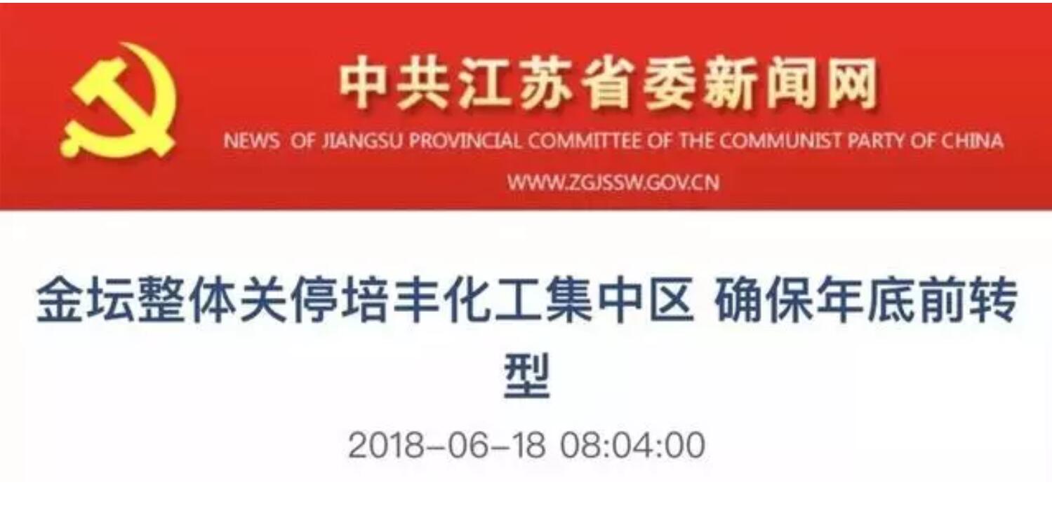 據(jù)當(dāng)?shù)毓俜矫襟w2018年報(bào)道顯示,常州市金壇區(qū)于2016年8月1日收到中央環(huán)境保護(hù)督察組交辦的環(huán)境信訪事項(xiàng)后,持續(xù)對(duì)園區(qū)企業(yè)進(jìn)行了提標(biāo)改造。作為2016年中央環(huán)保督察交辦的38個(gè)化工園區(qū)問題之一,因未能滿足500米衛(wèi)生防護(hù)距離內(nèi)居民全部拆遷的要求,區(qū)委、區(qū)政府決定從根源上消除環(huán)境隱患,結(jié)合將來(lái)的區(qū)域發(fā)展規(guī)劃,取消培豐化工集中區(qū)產(chǎn)業(yè)定位,按化工企業(yè)整治的要求,對(duì)所有企業(yè)實(shí)行關(guān)停。